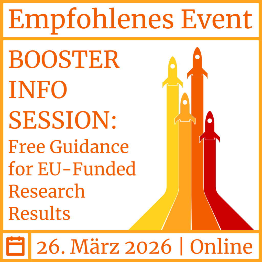Schalten Sie ein zur Infosession von Booster und der Generaldirektion Forschung und Innovation der Europäischen Kommission am 26. März 2026 von 11:00-12:00 Uhr, um einen Rundumblick zu den kostenlosen EU-Projektdienstleistungen von Booster zu erhalten.