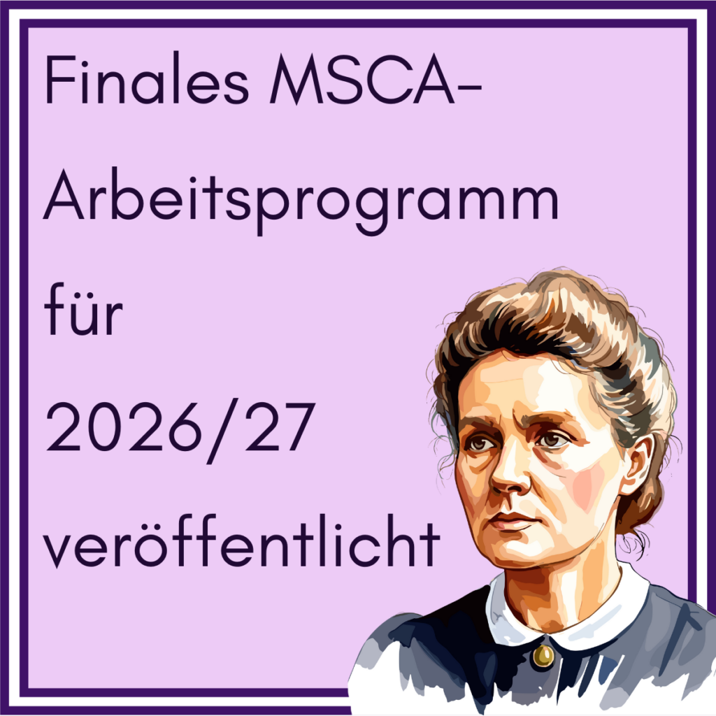 Zum MSCA Arbeitsprogramm 2026/27 gelangen Sie hier: https://ec.europa.eu/info/funding-tenders/opportunities/docs/2021-2027/horizon/wp-call/2026-2027/wp-2-marie-sklodowska-curie-actions_horizon-2026-2027_en.pdf