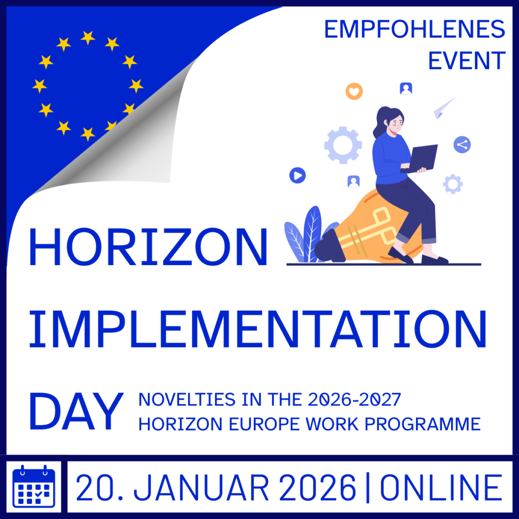 Schalten Sie am 20.01.2026 zum Horizon Implementation Day der EU-Kommission ein, um mehr zu den Neuerungen der Horizon Europe-Arbeitsprogramme für den Zeitraum 2026–2027 zu erfahren.