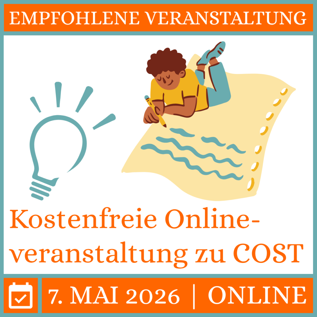 Haben Sie Fragen zu Ihrem COST-Antrag? Dann sollten Sie sich die kostenfreie Onlineveranstaltung der Nationalen Koordinationsstelle für COST am 7. Mai 2026 von 9:30-12:30 Uhr nicht entgehen lassen, um zu erfahren, worauf es bei der Beantragung von COST-Aktionen ankommt.