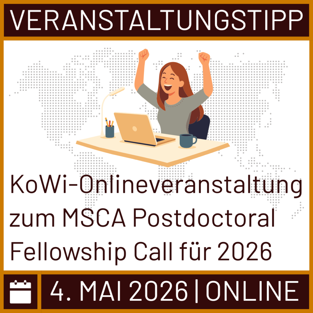 Die Kooperationsstelle EU der Wissenschaftsorganisationen (KoWi) veranstaltet am 4. Mai 2026 von 10:00-11:30 Uhr eine auf Englisch gehaltene Infoveranstaltung zum MSCA Postdoctoral Fellowship (MSCA PF) Call für 2026.
