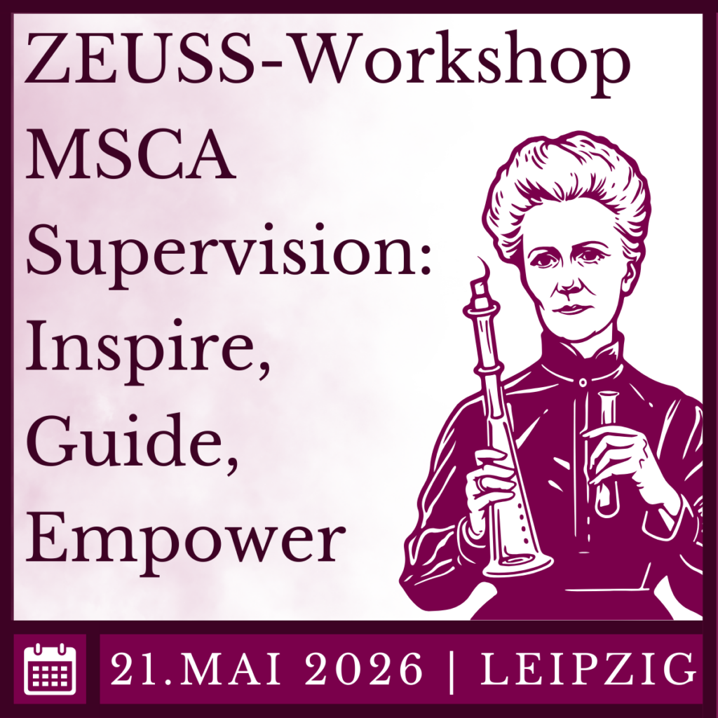 Wollen Sie eine:n Postdoc im Rahmen eines MSCA Postdoctoral Fellowship (PF) aufnehmen? Dann lassen Sie sich den ZEUSS-Workshop „MSCA Supervision: Inspire, Guide, Empower“ am 21. Mai 2026 von 09:30-16:00 Uhr an der Universität Leipzig nicht entgehen.