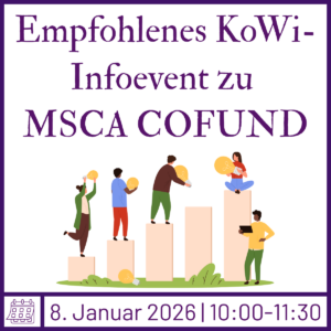 Die KoWi veranstaltet am 8. Januar 2026 von 10-11:30 Uhr ein Online-Infoevent zum MSCA COFUND Call 2026. Mit MSCA COFUND werden Programme auf regionaler, nationaler und internationaler Ebene gefördert, die…